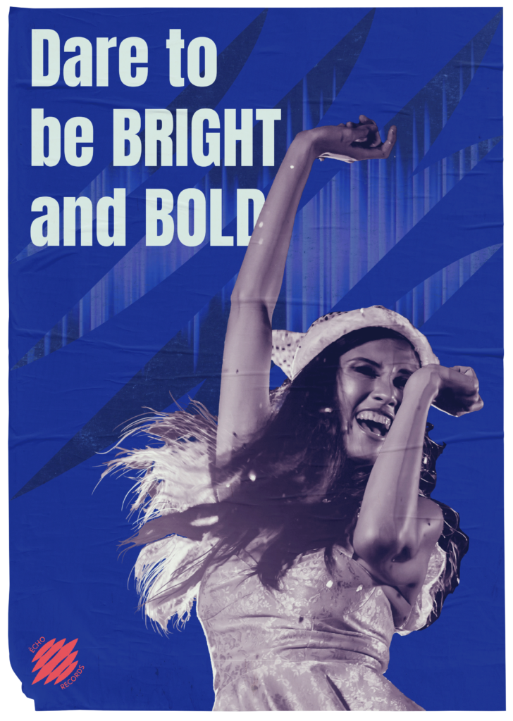Écho Records, jeune label résolument underground, s’affirme avec une identité visuelle vibrante et singulière. Son logo, pensé pour être modulable, peut se décliner en plusieurs formes afin d’insuffler un esprit ludique et dynamique à l’ensemble de l’univers graphique.