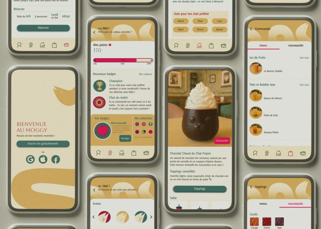 Conception d’une application dédiée à un bar à chats fictif, imaginée à partir des points perfectibles que nous avons observés lors de nos sorties entre amies.