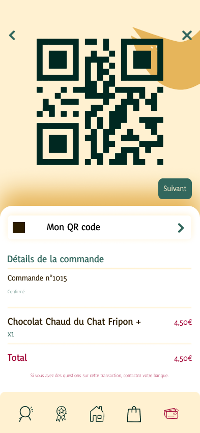 Pour ce projet, mon intention était de créer une application chaleureuse et facile à utiliser. Ayant choisi le bar à chats comme thème, je voulais également créer une interface amusante et douce. J’ai utilisé une palette de couleurs composée de bruns, de verts et de roses. Les bruns sont majoritaires afin de rendre l’application chaleureuse ; ils rappellent également le café. J’ai utilisé le vert pour les boutons principaux, car leur contraste est assez fort, ce qui est idéal pour les daltoniens. Enfin, les boutons secondaires sont roses, car cette couleur capte davantage l’attention. Pour rendre l’application plus mignonne, j’ai arrondi tous les angles, que ce soit ceux de l’écran ou des boutons. J’ai également créé une mascotte (le chat serpent) pour que l’application soit facilement reconnaissable. Il peut « circuler dans les écrans ».